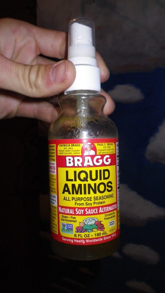 | Bragg's makes a spray bottle for soy sauce that's perfect for greasing tins. |